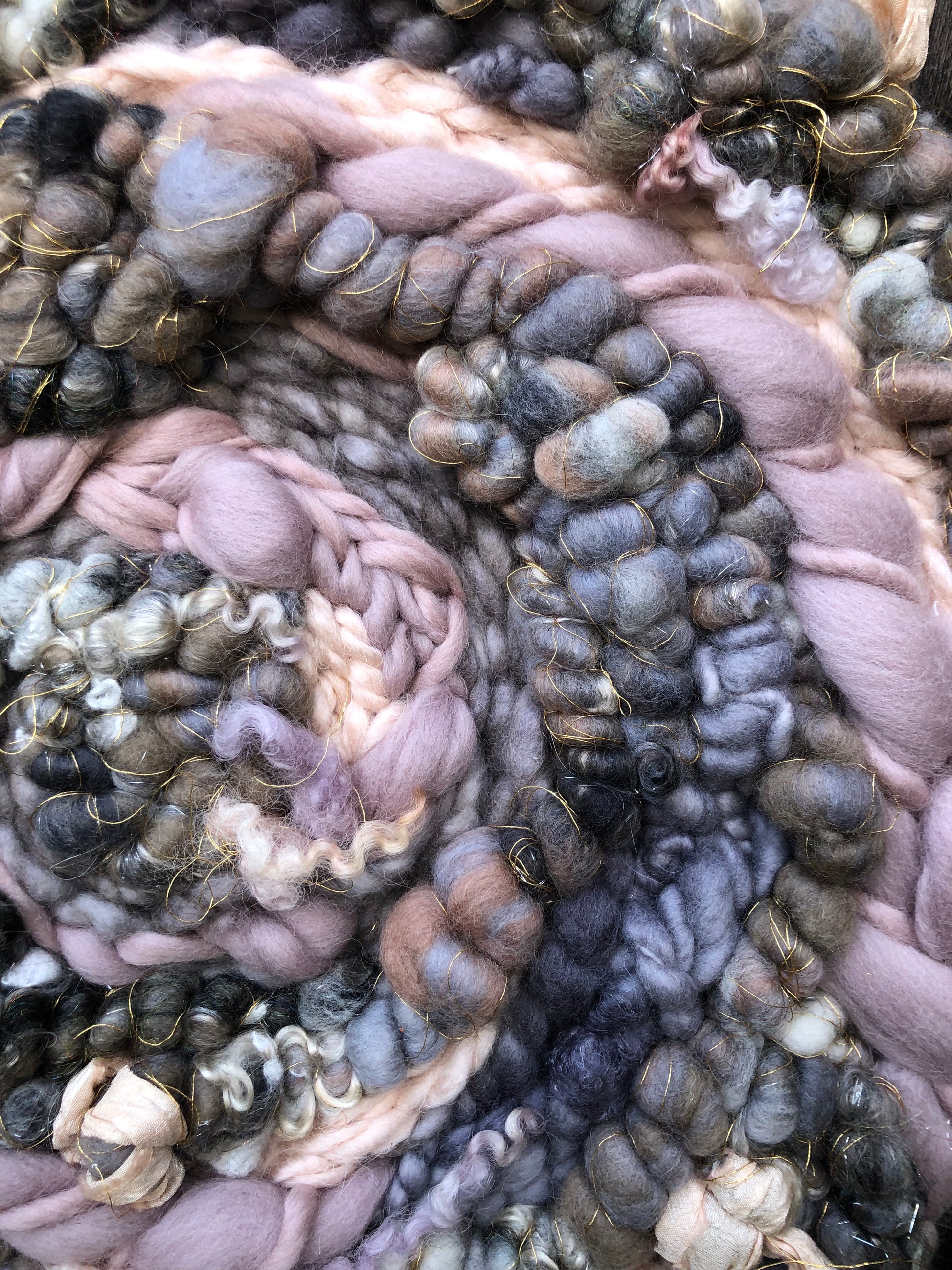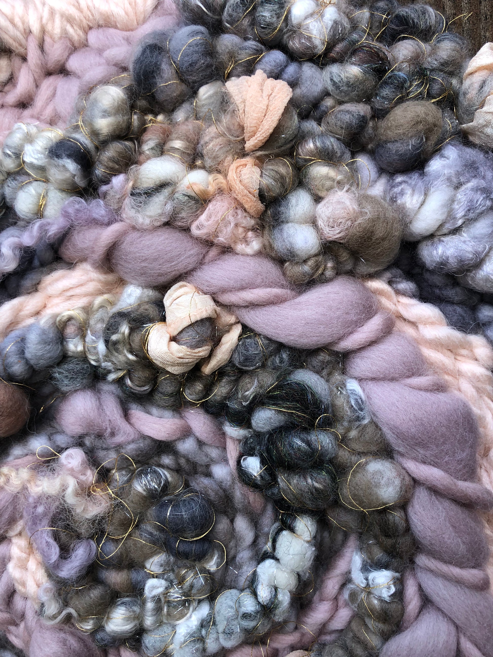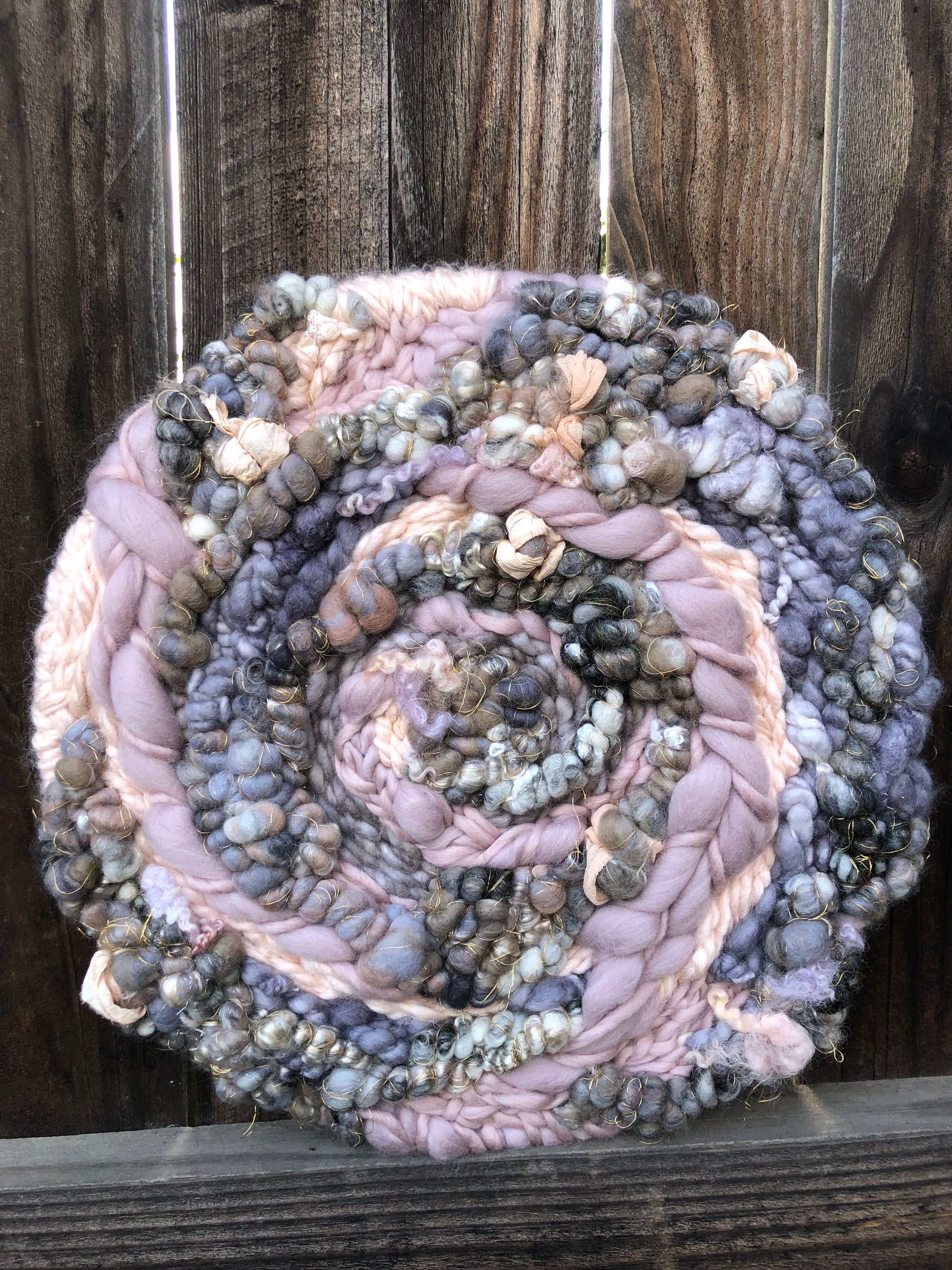 Early spring thunderstorms inspired this muted wall hanging. Soft pinks and purples are surrounded by clouds of grey. The subtle hints of sparkle add a gentle feminine feel.
